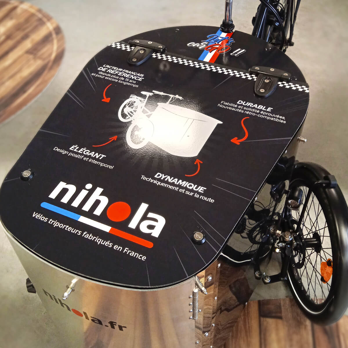 Ce nouveau cadre équipera nos triporteurs avec assistance pédalier dès 2025. Le design originel qui a fait le succès de NIHOLA est préservé et tonifié mais notre bureau d'études a repensé sa géométrie pour faciliter l'enjambement et sa conception globale pour répondre pleinement aux nouvelles exigences du marché. Vous avez noté la présence d'une bride multi assistances qui nous permettra d'étendre par la suite ce nouveau cadre à nos gammes musculaire et assistance roue arrière.