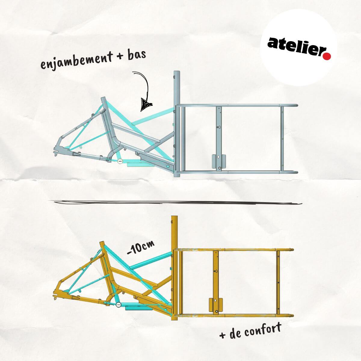 Il conservera toutes ses qualités dynamiques et sa réparabilité est toujours aussi aisée. Ce cadre hébergera toutes les assistances habituelles : musculaire, roue arrière et pédalier. Avec une belle nouvelle ci-dessous...