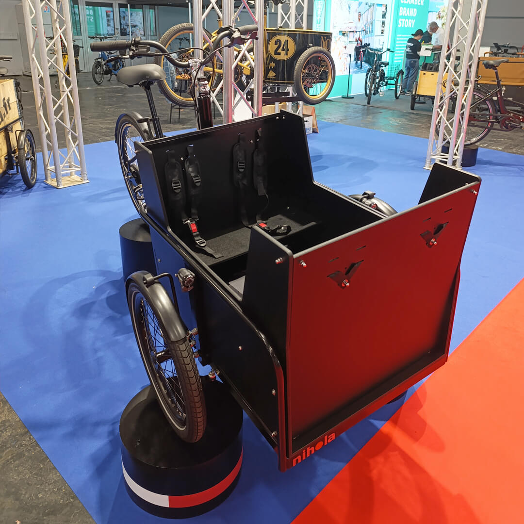 Nous avons également présenté en avant-première un prototype du futur triporteur avec quatre place enfants dans la malle avant. Un bel aperçu de l'avenir de NIHOLA et de ses ambitions pour les transports urbains en famille.