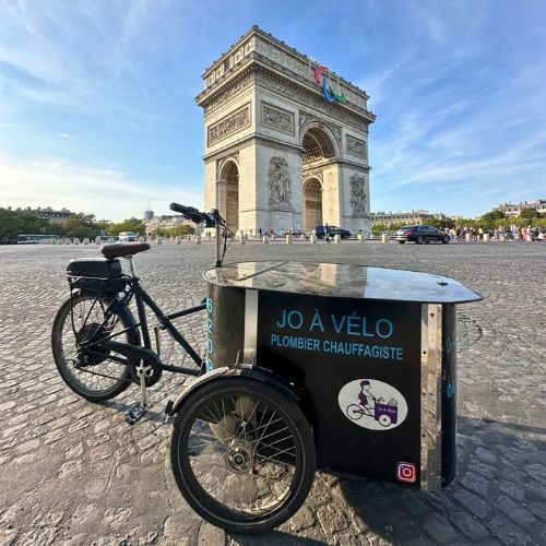 Je m’appelle Jo, je suis plombier à Paris depuis plusieurs années et j’ai fondé Jo à Vélo, une entreprise artisanale qui se déplace exclusivement à vélo cargo pour ses interventions.