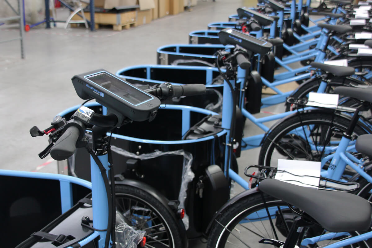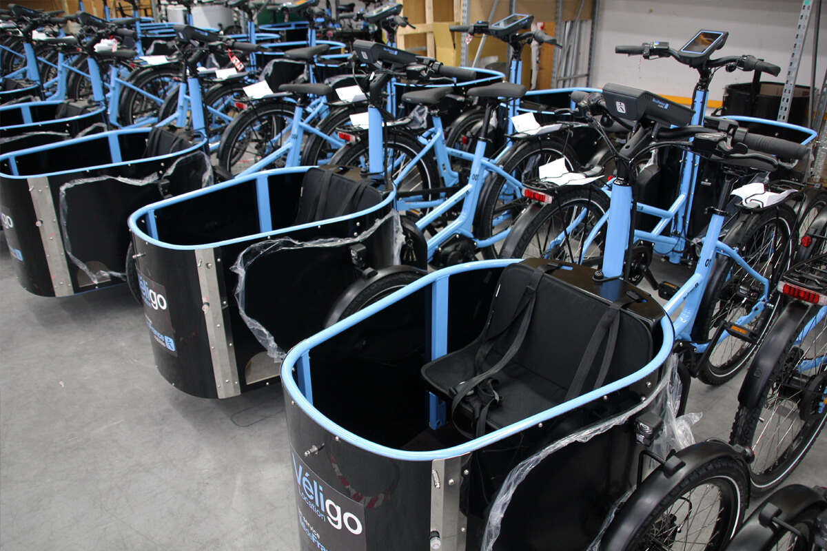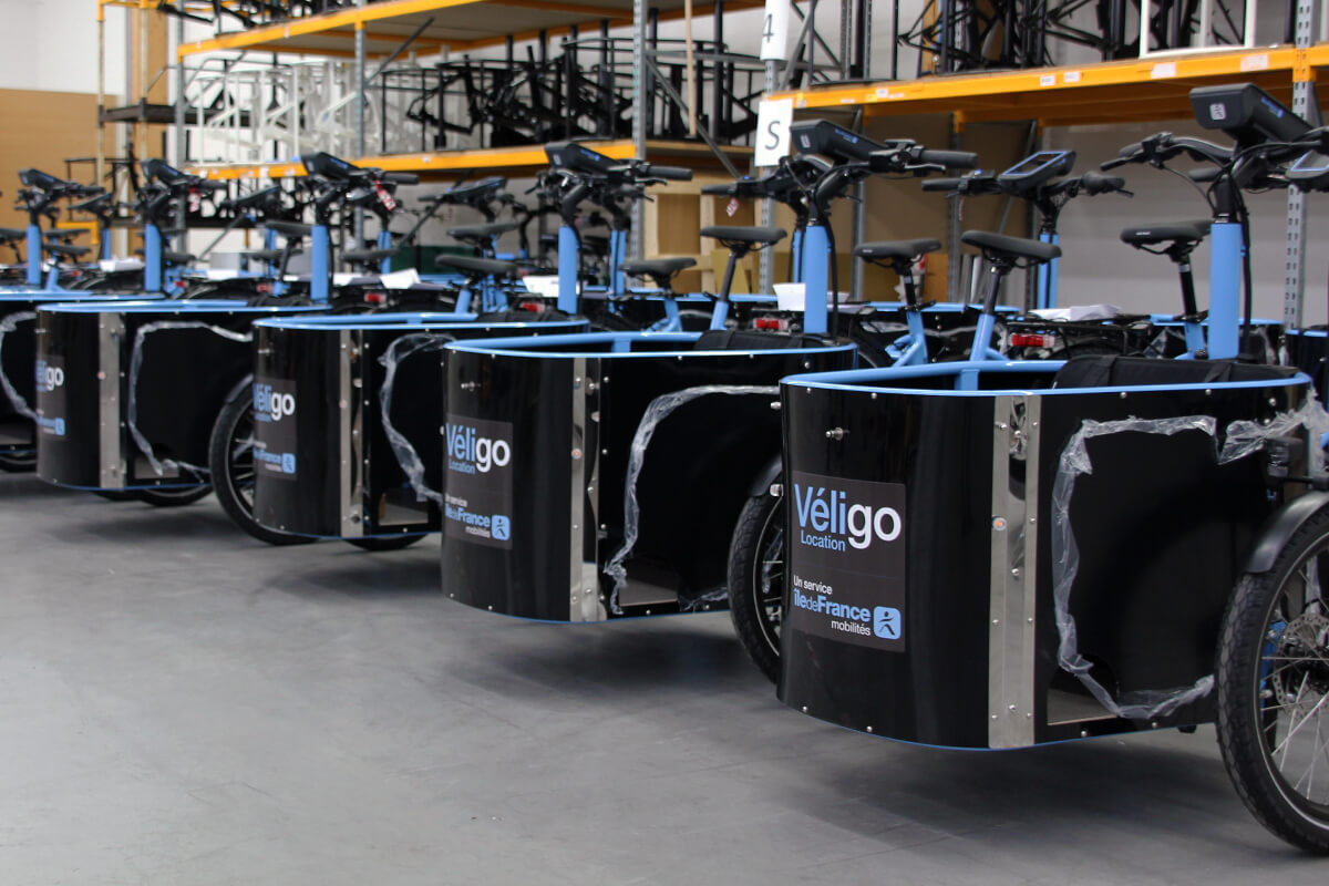Pour les usages quotidiens des familles (trajets scolaires, courses, loisirs) en triporteur, la région Île-de-France a de nouveau choisi NIHOLA France, et ce pour la sixième année consécutive. Nos monteurs mécaniciens se sont donc retroussées les manches pour assembler, au sein notre atelier de Montaigu-Vendée, plusieurs dizaines de modèles de triporteurs équipés d’une banquette dans la malle avant permettant d’accueillir jusqu’à deux enfants avec toute le confort et toute la sécurité nécessaires. Ces modèles - qui vont venir s'ajouter à ceux déjà en circulation - sont équipés de notre nouveau cadre G2 peint aux couleurs de Véligo, comme tous les vélos de la flotte.